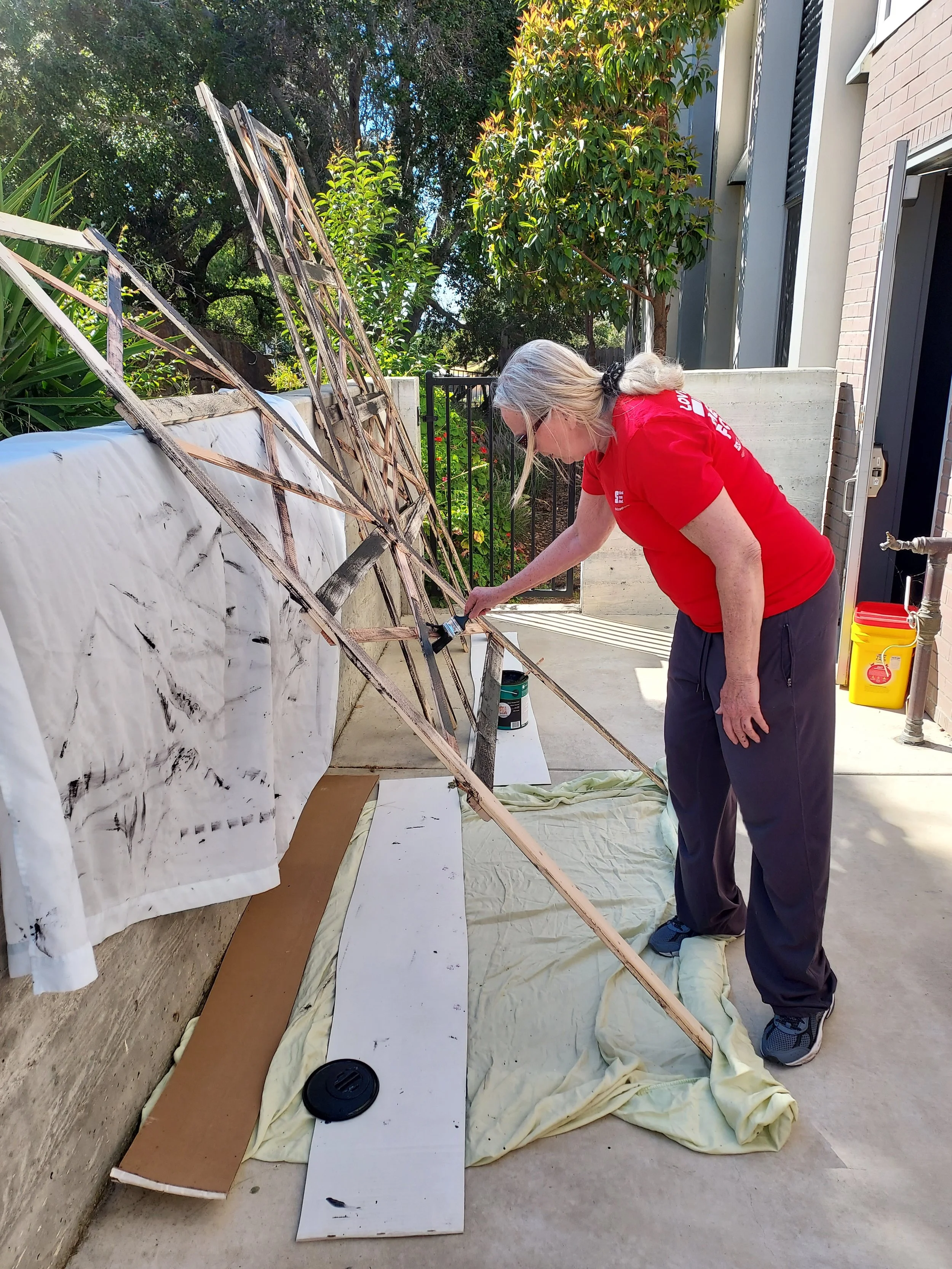 Partnering with the Oil & Gas Action Network, Gerrie helped design and build an oil well replica for the End Dependence Day 2023 in San Luis Obispo.