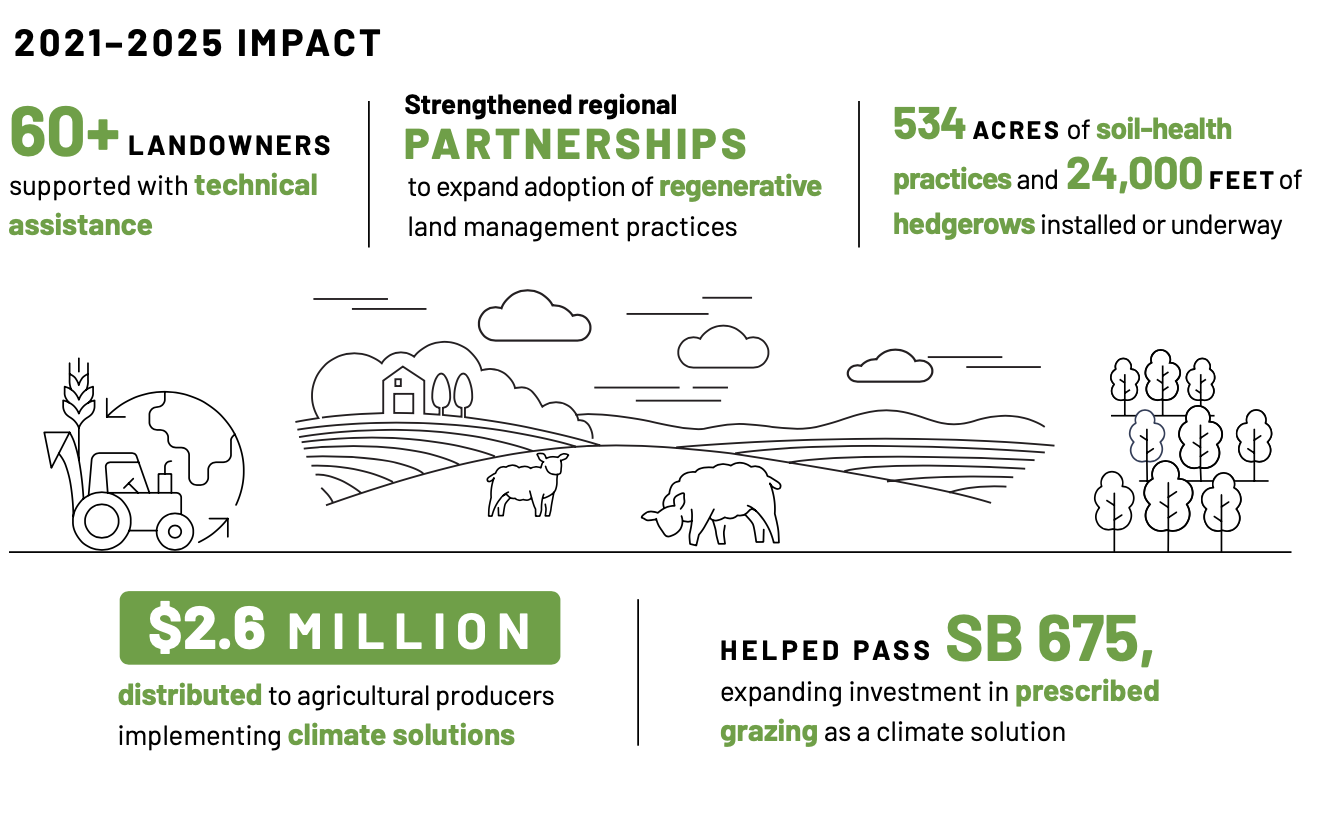 What followed was neither smooth nor simple. We navigated a pandemic, federal policy whiplash, and the unexpected loss of more than $1.5 million in promised federal climate funding. We took risks, caught some tailwinds, and made difficult calls. Through all of it, we kept the work moving.The results in this report are the product of that persistence — and of a growing network of local governments, farmers, frontline organizations, businesses, and community members who refused to wait for someone else to act. Together, we helped bring renewable energy to 90% of residents in our region, directed millions of dollars into climate-smart agriculture, built community resilience hubs, and expanded access to clean transportation for people who have been left out of that transition.
