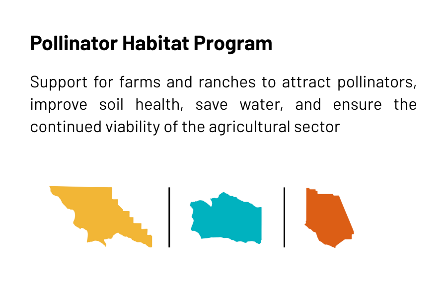 We guided the Giugnis to apply for a Pollinator Habitat Program grant from the California Department of Food and Agriculture. With support from our team, Gina and Mikey received $60,000 to create pollinator meadows, install wildlife habitat, and plant hedgerows that support carbon sequestration, improve soil health, and save water.